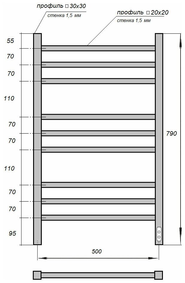 Полотенцесушитель электрический POINT П6 400x600 диммер справа, черный