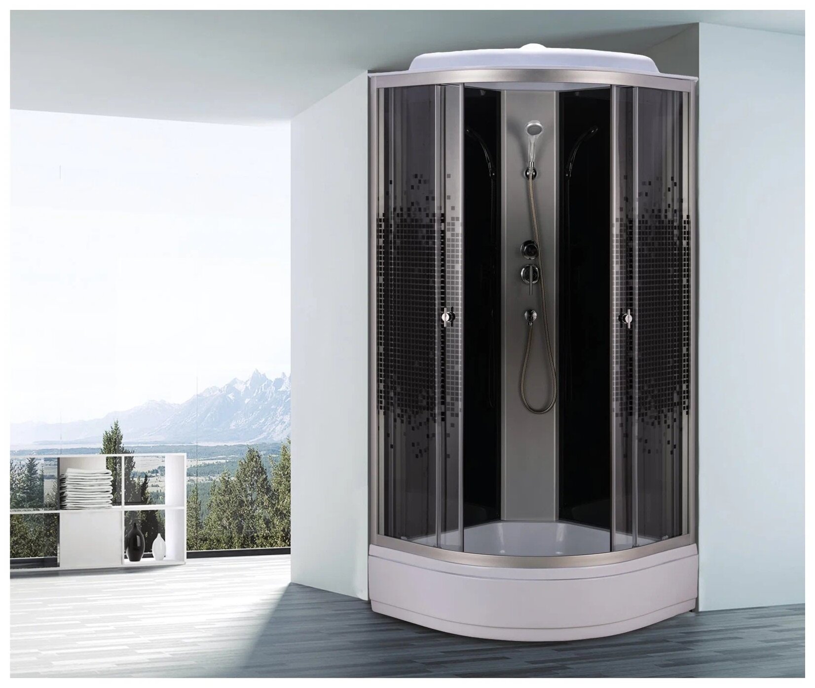 Кабина душевая NG-3504-14BLACK (900х900х2150) низкий поддон 26см, стекло мозаика