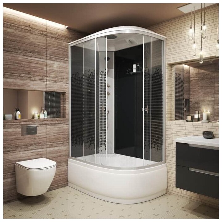 | Функции | гидромассаж вертикальный / верхний душ (тропический) / турецкая баня / подсветка / вентиляция |