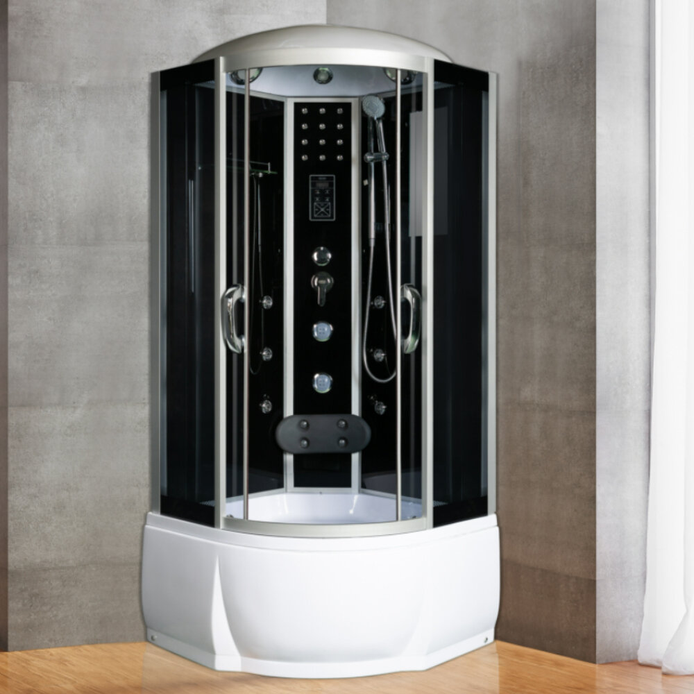 Лучшие цены. Длина 90 Сифон С гидрозатвором Ширина 90 Верхний свет Есть Высота 217 Полочки 1 полочка Ориентация Нет Зеркало Есть Форма Четверть круга Радио Есть Материал задних стенок Стекло Телефон Bluetuth Материал поддона Акрил Динамики Есть Сиденье Есть Дисплей Сенсорный Конструкция дверей Раздвижные Смеситель Стационарный Толщина стекла 4 мм Верхний душ Тропический ливень Цвет передних стекол Тонированное Подсветка “Лунный свет” Есть Цвет задних стенок Черный Ручной душ Есть Количество створок двери 2 Вентиляция. Магазины в вашем городе.