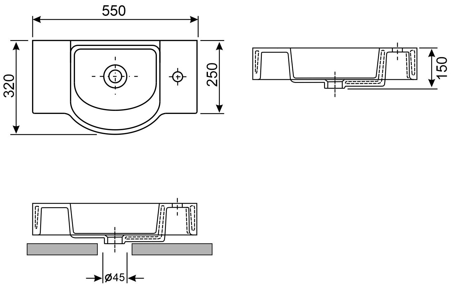 Маленькая раковина в ванную комнату или туалет Wellsee WC Area 151809000: накладная или подвесная раковина, ширина умывальника 55 см, цвет глянцевый белый