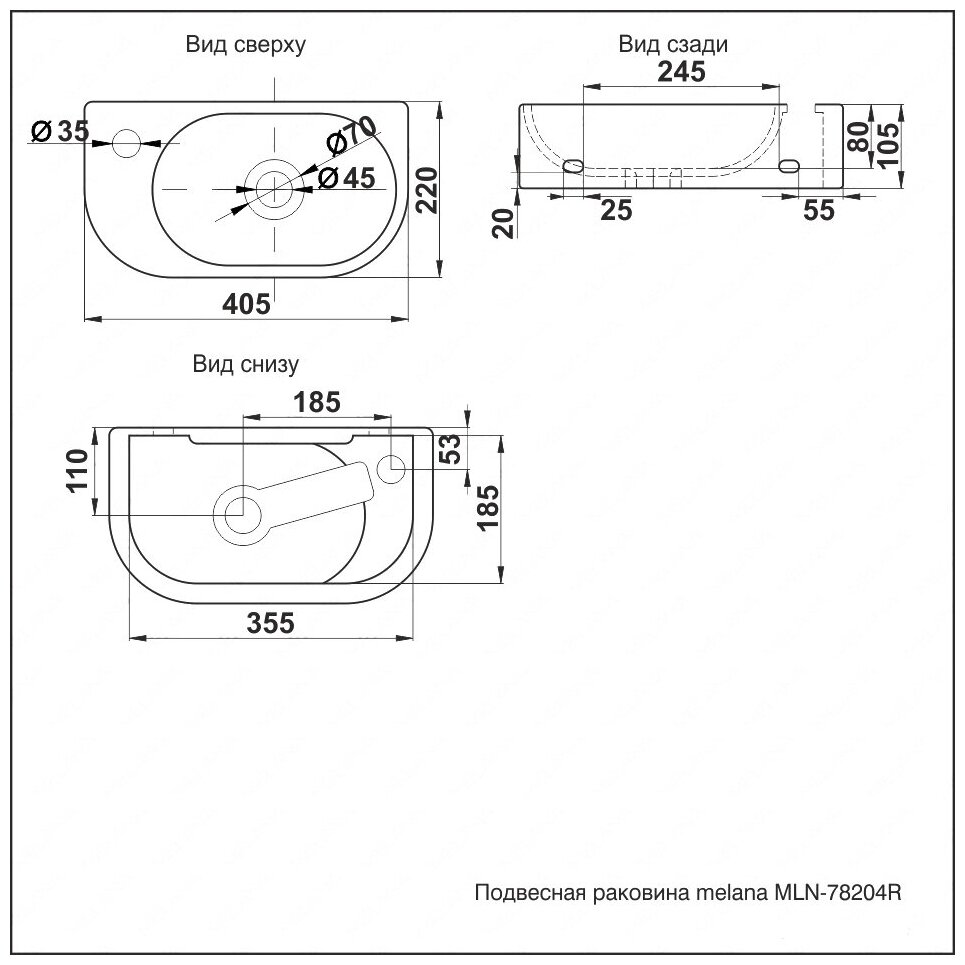 Умывальники Керамическая раковина Melanа MLN-78204R