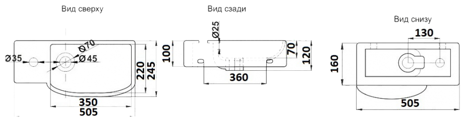 Раковина подвесная CeramaLux N 7947CR правосторонняя 50,5x24,5 см, белая 6 215 ₽ Подробнее