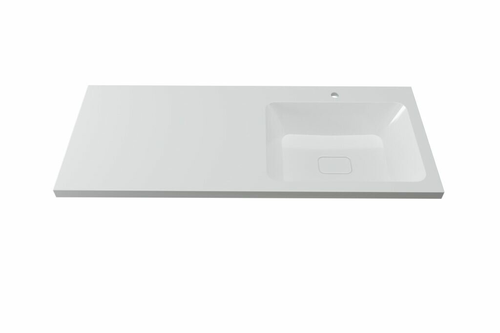 Лучшие цены. Раковина-столешница Камилла с правосторонней мойкой обладает простой геометрической формой. В комплект входит кронштейн. Материал литьевой мрамор Высота, см 3.6 Глубина, см 17.9 Ширина, см 110 Диаметр слива, см 4. Отверстий под смеситель 1 Цвет Белый Гарантия производителя, лет 4 Отверстие под перелив Нет. Характеристики упаковки Длина упаковки, м.1.25 Ширина упаковки, м. 0.21 Высота упаковки, м. 0.54 Объем упаковки, м3 0.14. Вес упаковки, кг. Магазины в вашем городе.