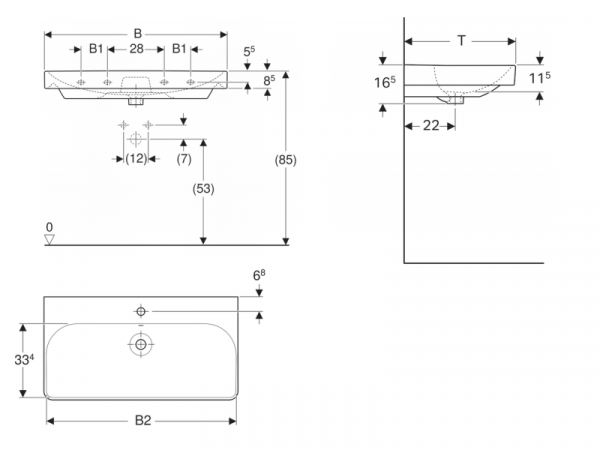 Умывальник Раковины для ванной Geberit Раковина Smyle Square отверстия для смесителя-1 цвет-белый (500.249.01.1)