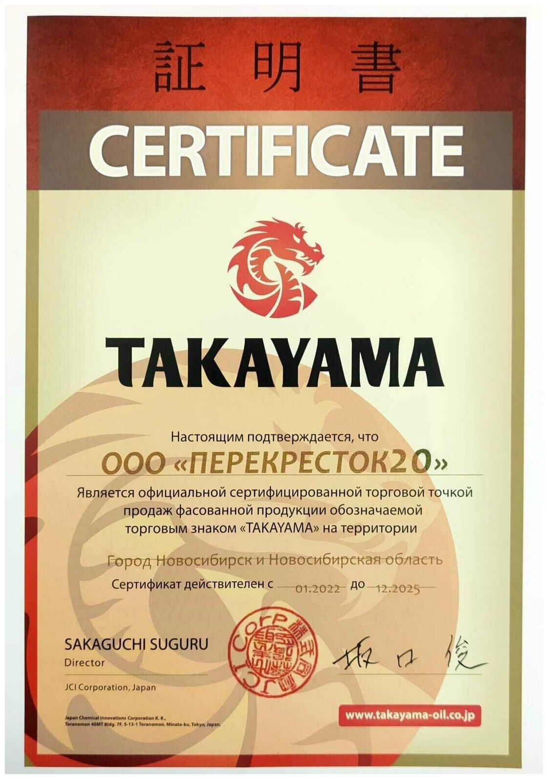 Лучшие цены. TAKAYAMA SAE 10W-40 - современное полусинтетическое моторное масло с уникальным составом присадок, обеспечивающее стабильную работу двигателя. Благодаря своим свойствам эффективно защищает детали двигателя во время пуска автомобиля, когда нагрузки на смазываемые узлы особенно велики. Низкие потери при испарении и современный пакет присадок сводят расход масла к минимуму. Масло TAKAYAMA SAE 10W-40 соответствует международным стандартам и гарантирует надежную работу автомобиля. Магазины в вашем городе.