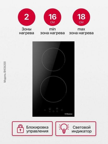 Домино HANSA/ Индукционная варочная поверхность HANSA BHI36200 30 см, функция обнаружения посуды, блокировка от детей, таймер,индикация остаточного тепла, цвет черный