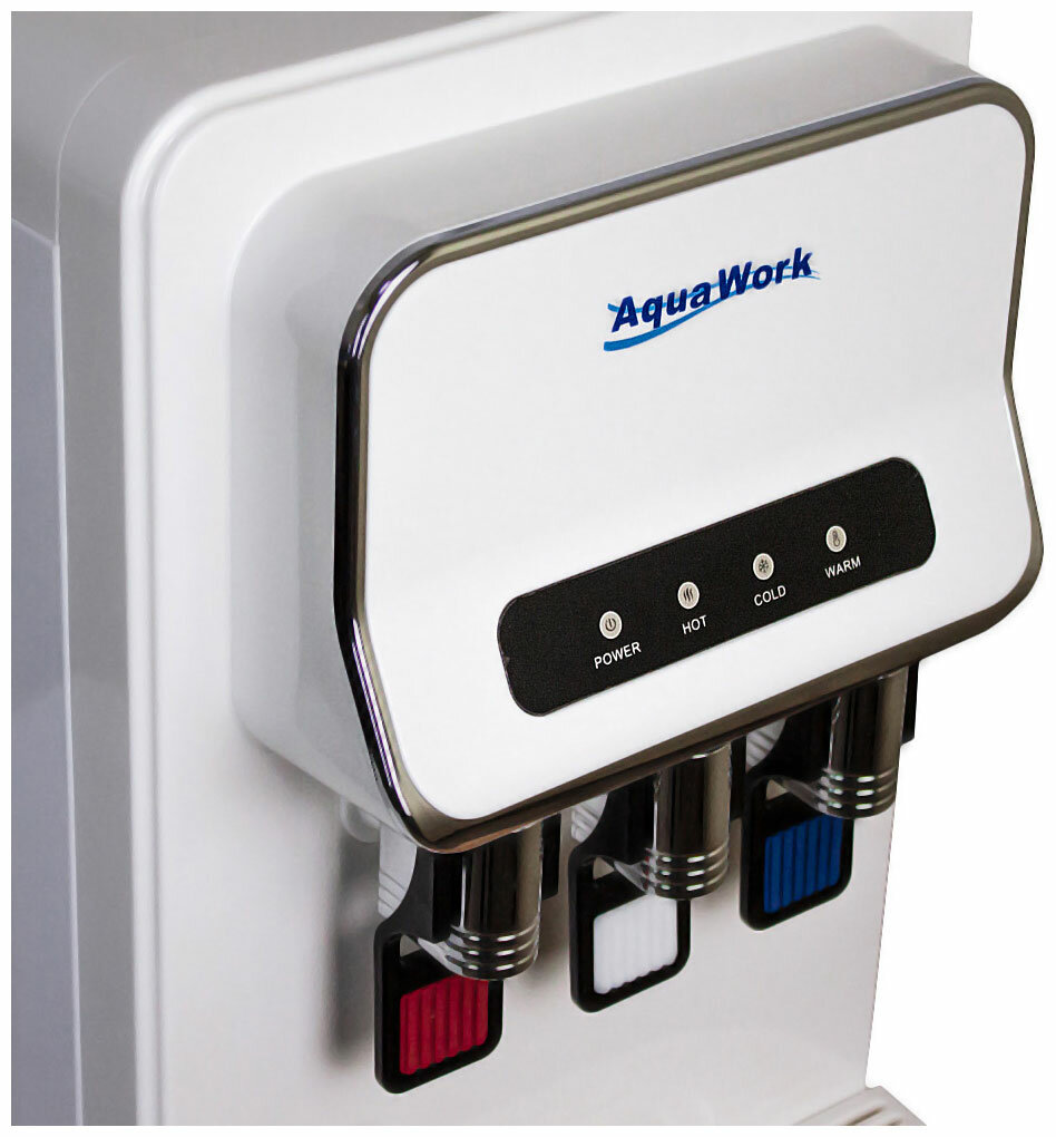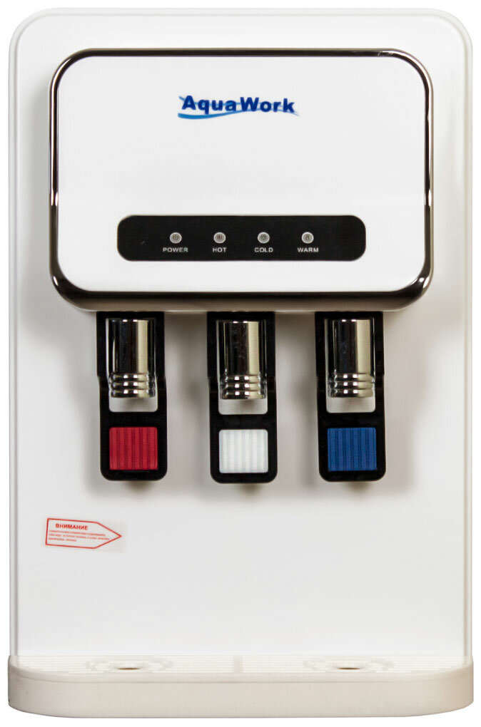 Лучшие цены. Небольшой настольный проточный кулер-пурифайер Aqua Work D93-WE с нагревом и электронным охлаждением воды. Очищает водопроводную воду при помощи системы UF-фильтрации. Металлический корпус Нагрев - в баке мощностью 550 Вт, не менее 5 литров горячей воды за час Электронная система охлаждения - 3-4 стакана в течении часа 3 краника для подачи воды Третий краник подает воду комнатной температуры Можно закреплять держатель стаканчиков на магните Для подключения Aqua Work D93-WE к водопроводу используйте шаровый. Магазины в вашем городе.