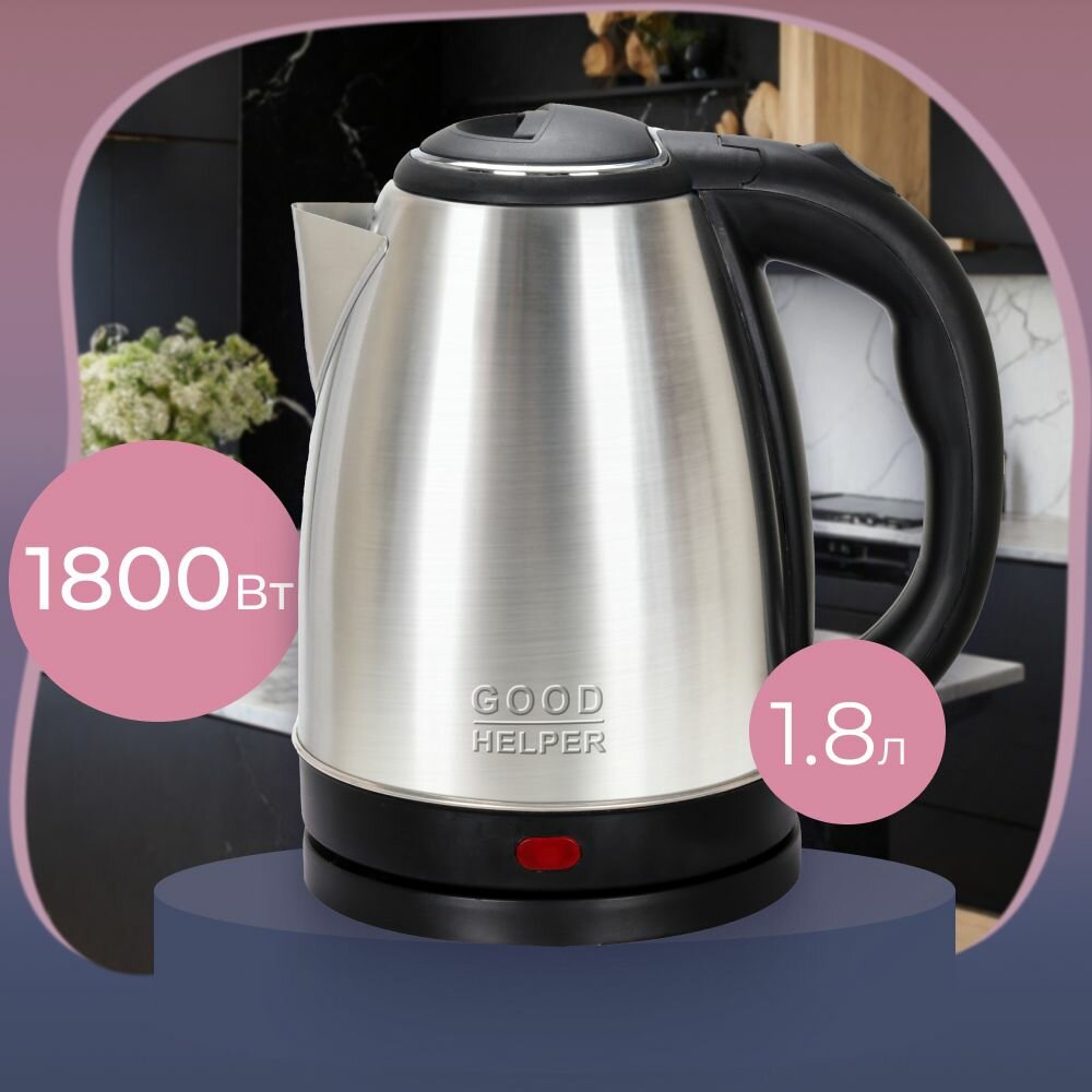 Чайник электрический GOODHELPER KS-18B04 1,8 л, 1500 Вт, серебристый/черный