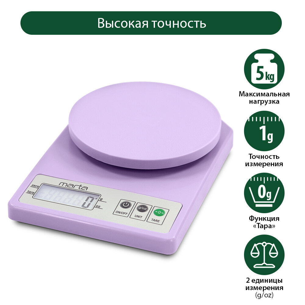 Весы MARTA MT-1637 лиловый аметист весы кухонные сенсор