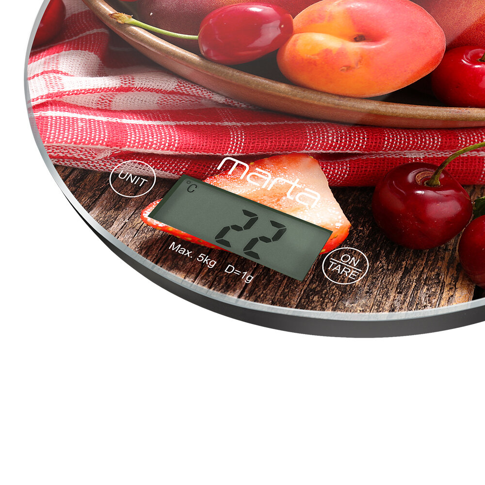 MARTA MT-1640 {temp} ягодный микс весы кухонные сенсор, встроенный термометр