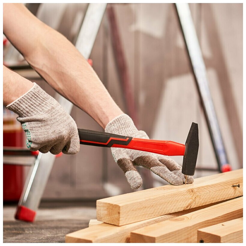 Лучшие цены. Слесарный молоток REXANT с фибергласовой рукояткой подходит для проведения ремонтных, отделочных и строительных работ. Это самый распространенный вид молотка, который необходим в быту и для профессионального применения. Комбинированный боек покрыт черным лаком и надежно зафиксирован на рукоятке при помощи специального эпоксидного клея. Он изготовлен из стали марки 50, что позволяет выдерживать мощные удары и обеспечивать длительный срок службы инструмента. Магазины в вашем городе.