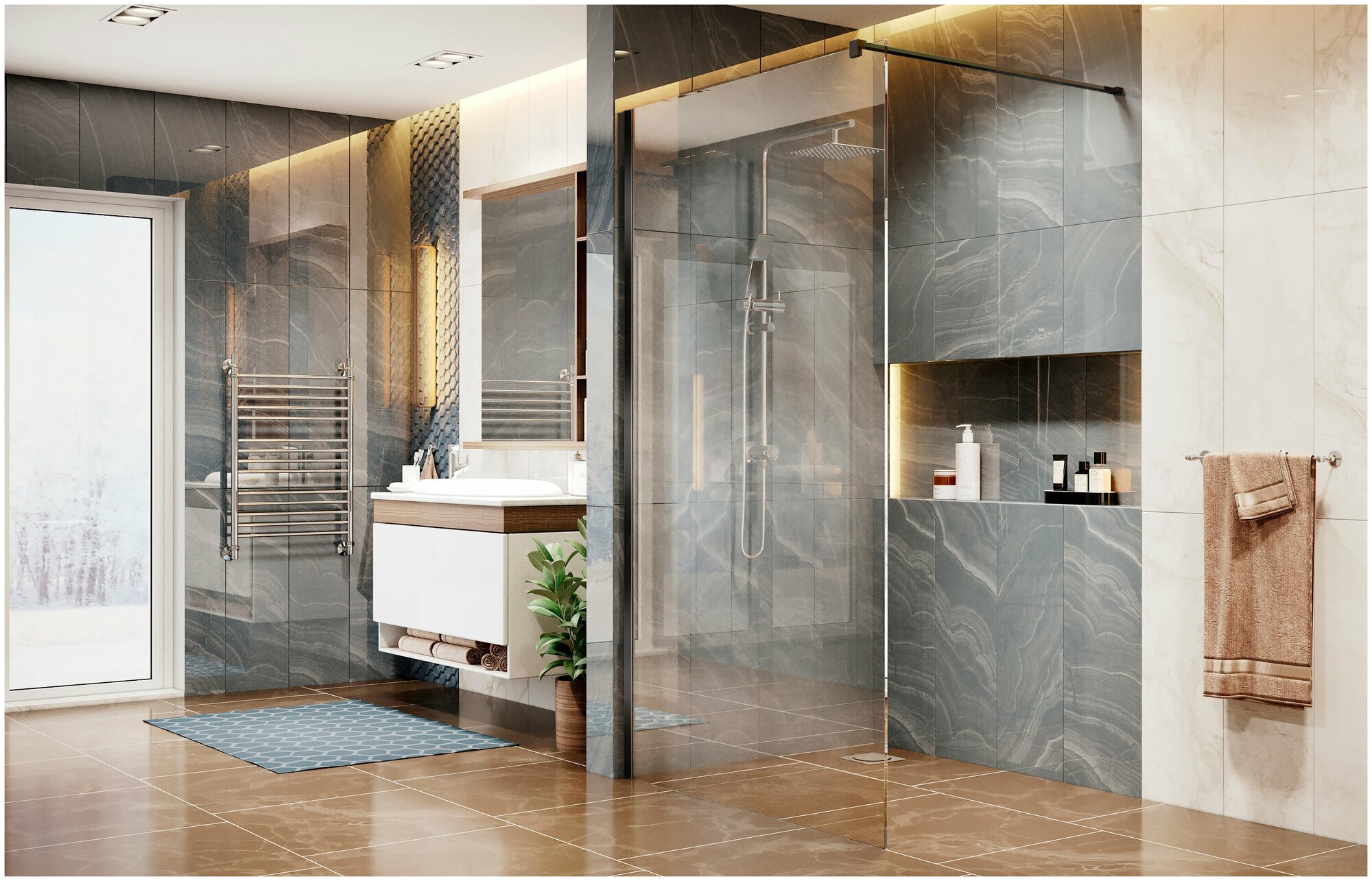 Душевая перегородка 100 см со свободным входом Ambassador Walk-in 15031110: душевая ширма из стекла 8 мм, профиль черный 23 121 ₽ Подробнее