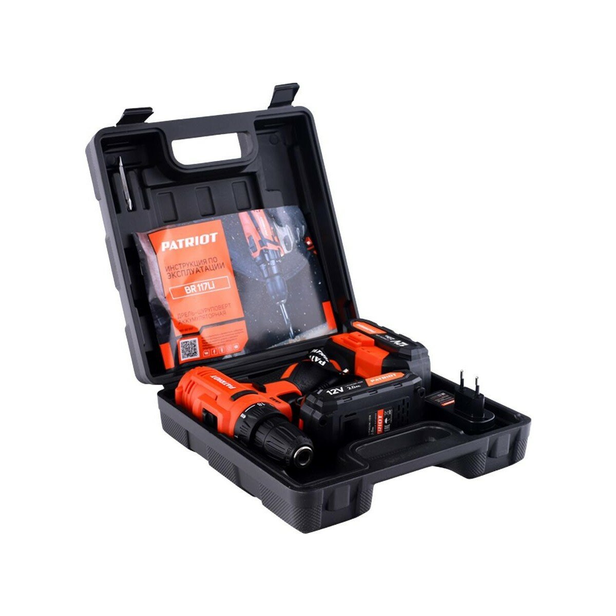 Дрель-шуруповерт аккумуляторная PATRIOT BR 117Li, две АКБ Li-Ion 12В 2,0 Ач, 2 скорости, кейс