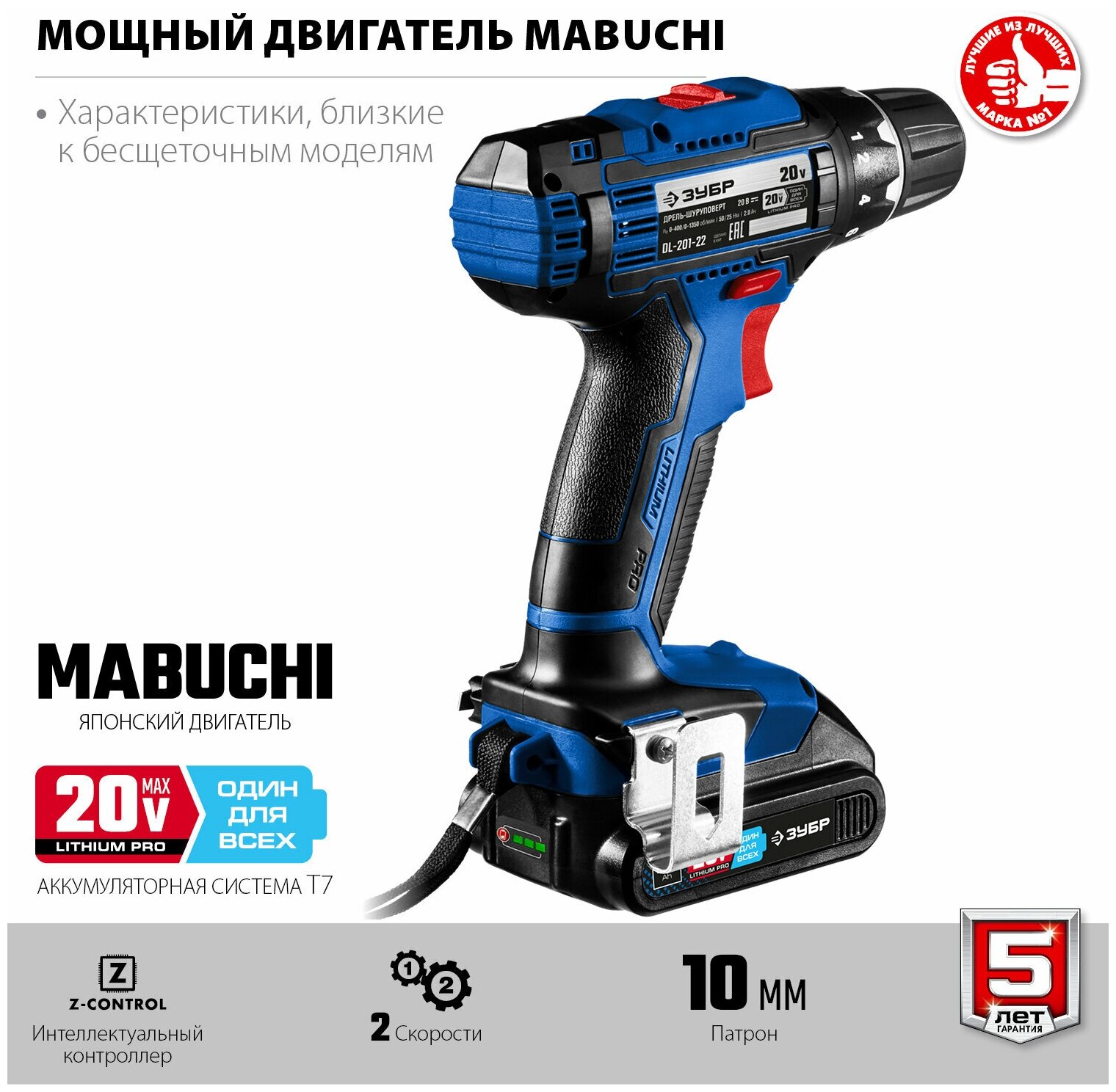 Дрель-шуруповерт ЗУБР DL-201-22 "ПРОФЕССИОНАЛ" 20В