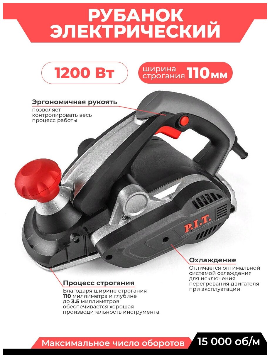 Лучшие цены. Описание Рубанка P.I.T. PEP006L-C2 110 мм Рубанок P. I. T. PEP006L-C2 110 мм, 1,2 кВт - это один из самых мощных рубанков P. I. T. и прекрасный помощник для домашней мастерской. Качественный, мощный и надежный инструмент для работы с древесиной любой твердости. Подходит для строгания шириной 110 мм. Благодаря высокой мощности рубанок снимает до 3,5 мм древесины за один проход. Производительность работы обеспечивает внушительная мощность 1,2 кВт и большое количество оборотов - 15000 об/мин. Магазины в вашем городе.