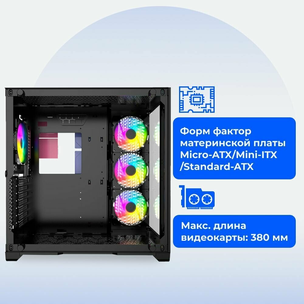 Powercase Vision Black, Tempered Glass, 4х 120mm 5-color fan, чёрный, ATX (cvba-l4) . 12 340 ₽ Подробнее