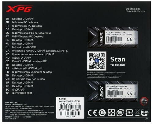| Маркировка производителя | AX4U41338G19J-DCBKD45G / AX4U41338G19J-DCWHD45G |