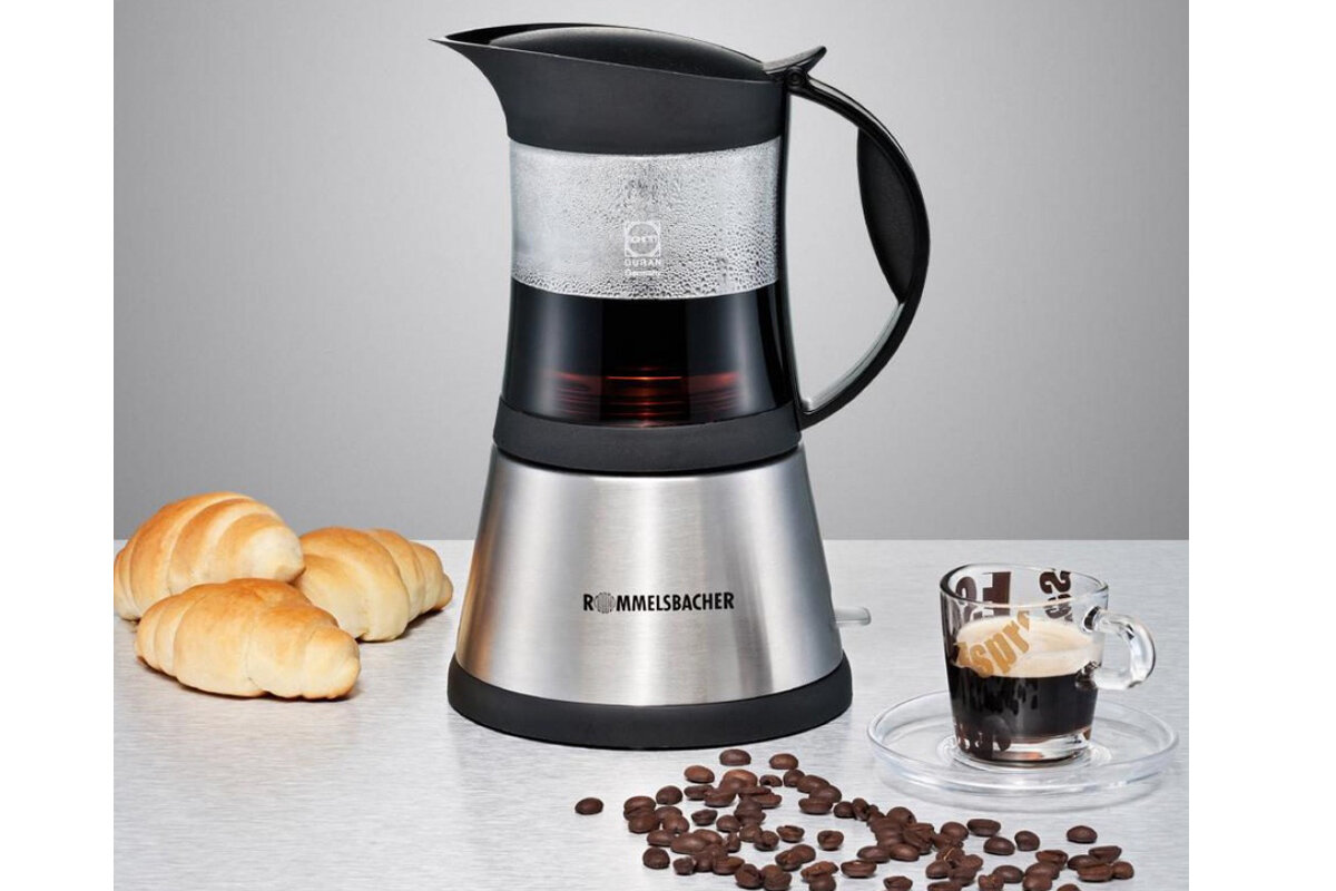 Лучшие цены. Кофеварка гейзерная Rommelsbacher EKO 376/G для приготовления 3 или 6 чашек традиционного итальянского эспрессо. Корпус из нержавеющей стали, кувшин для кофе из термостойкого стекла Schott Duran (Германия). Резервуар для воды объемом 0.3 литра со шкалой заполнения. Магазины в вашем городе.