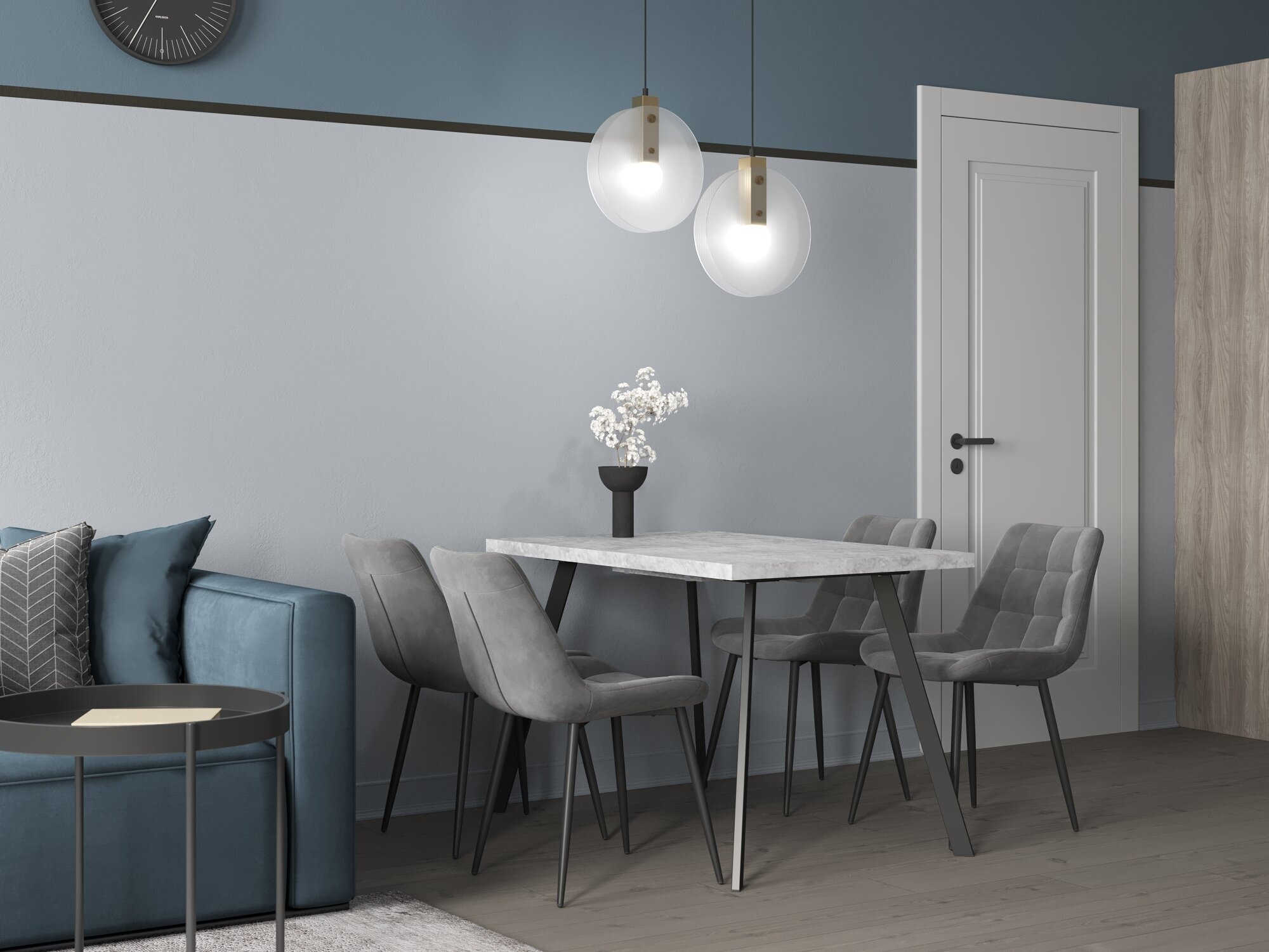 Комплект стульев для кухни 4 шт Флекс велюр пыльно-голубой
