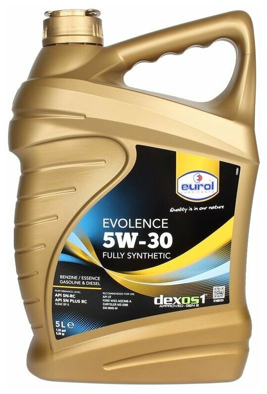 Моторное масло Eurol Evolence 5W-30 SN/GF, 4л, синтетическое, GM dexos 1 Gen 2; ILSAC GF-6A; Ford WSS-M2C946-A; Chrysler MS 6395; GM 6049-M