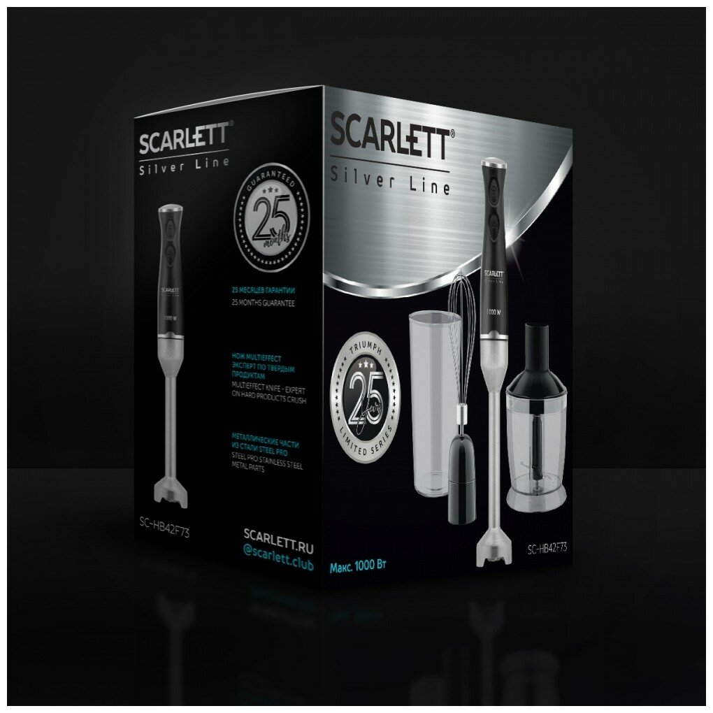 Блендер Scarlett SC-HB42F73 [1000 Вт, скоростей - 2, турборежим, измельчитель, стакан, венчик, черный, серебристый]