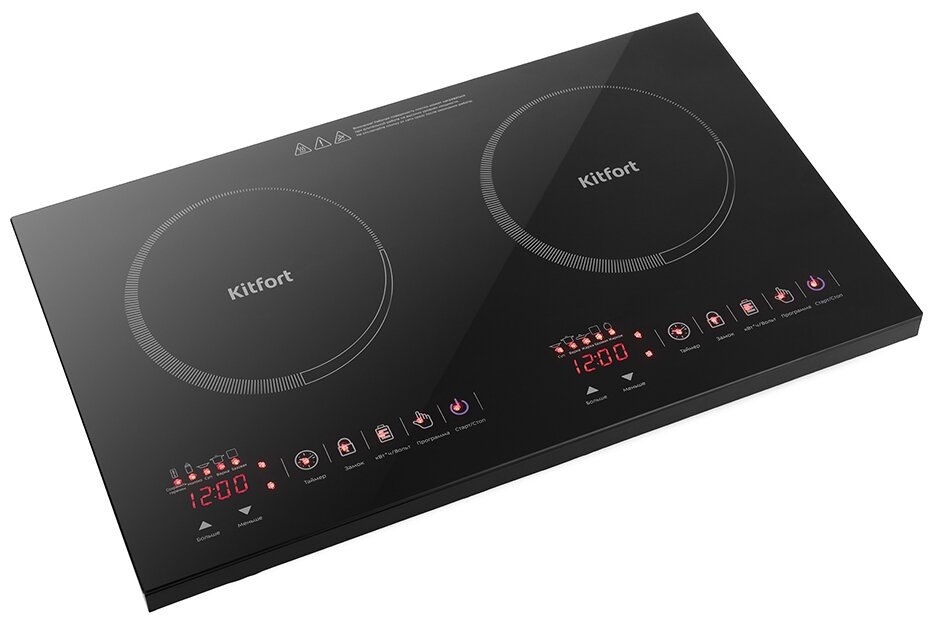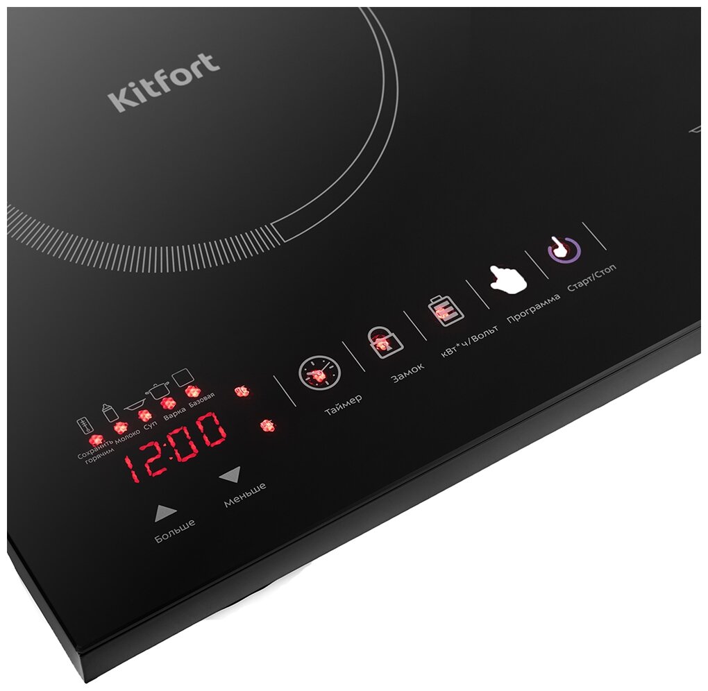 Плитка электрическая индукционная KITFORT KT-105, 4000 Вт, 2 конфорки, 20 режимов, 7 программ, сенсорное управ