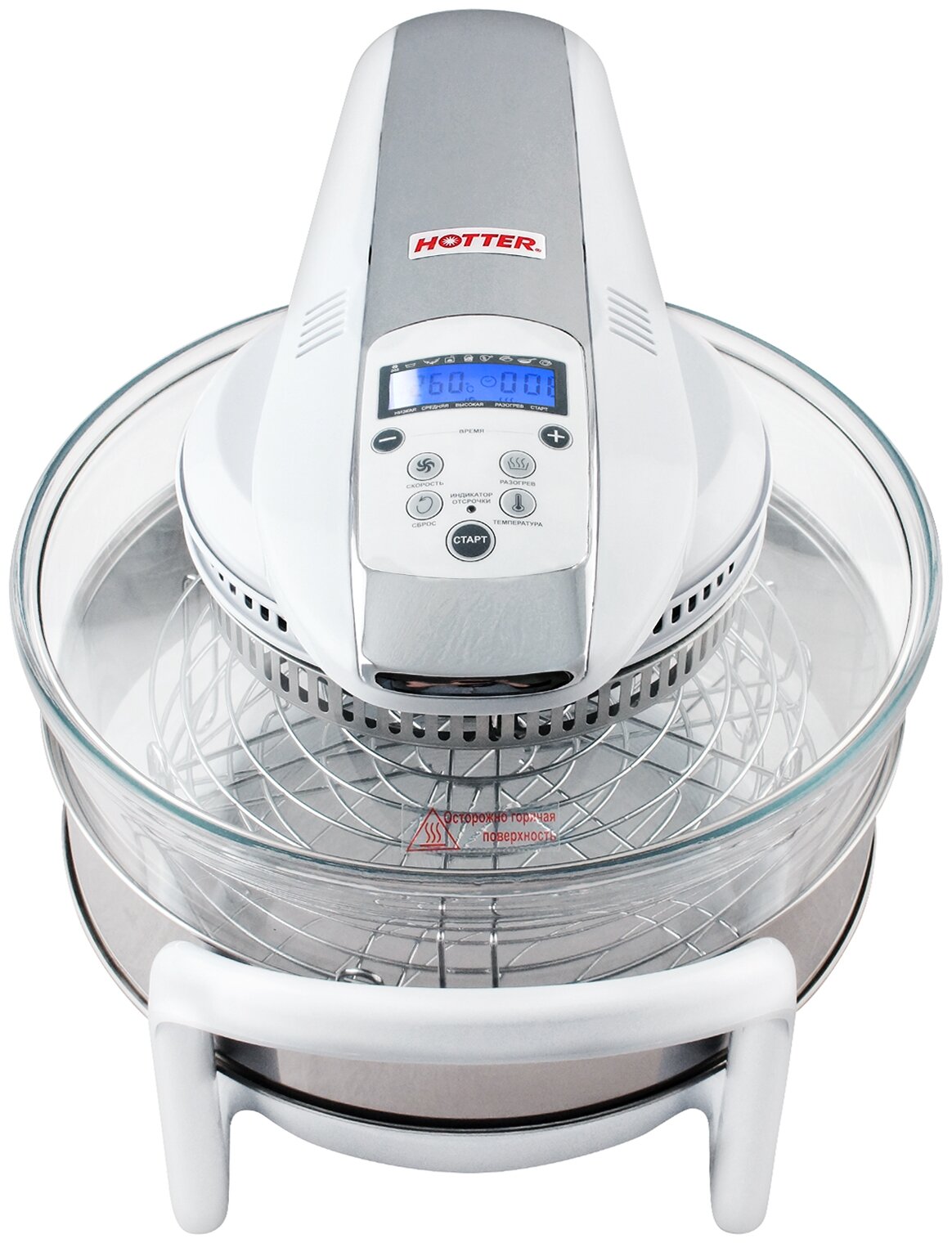 Лучшие цены. Аэрогриль HOTTER HX-1057 Platinum ЖК Модель очень удобная и надежная в эксплуатации. Отсрочка старта до 10 часов. Функция поддержания тепла. Регулировка температуры: 65-260 С. 3 скорости конвекции. Таймер на 10 часов. Съемные колба и стекло крышки для удобного мытья. Аэрогриль HOTTER HX-1057 Platinum ЖК известен как многофункциональный прибор, совмещающий в себе функции микроволновки, духовки с конвекцией, плиты, тостера, йогуртницы, пароварки, фритюрницы, стерилизатора, даже печи и мангала. Магазины в вашем городе.