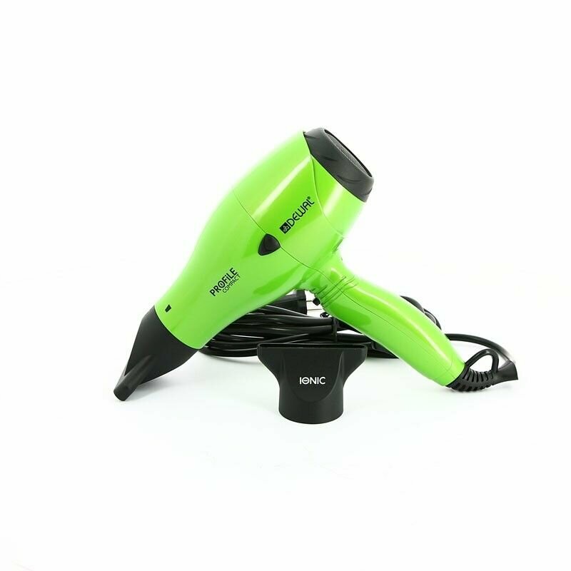 Фен DEWAL PROFILE COMPACT, зеленый, вес 600гр, размер 18см, 2000Вт, ионизация, 2 насадки, провод 3м