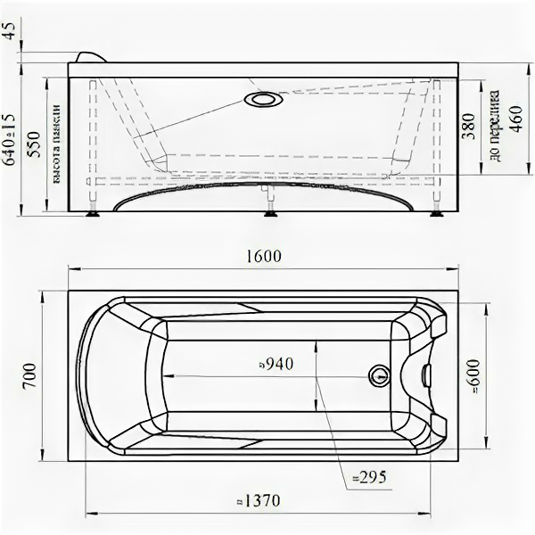 | Габариты (ДхШхВ) | 1700х780х475 мм / глубина (до перелива) — 400 мм / |