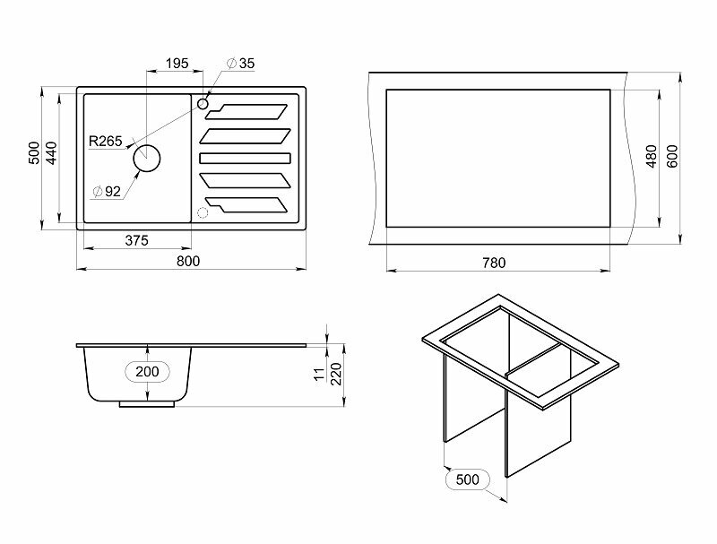 Мойка из композитного материала Granula GR-8002 черный 11 950 ₽ Подробнее