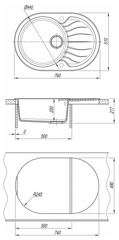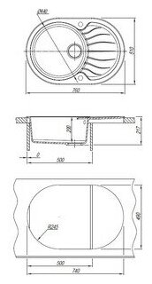 Мойка для кухни врезная каменная Dr. Gans БЕРТА-760, цвет черный, с крылом, овальная, 760х510х217 мм