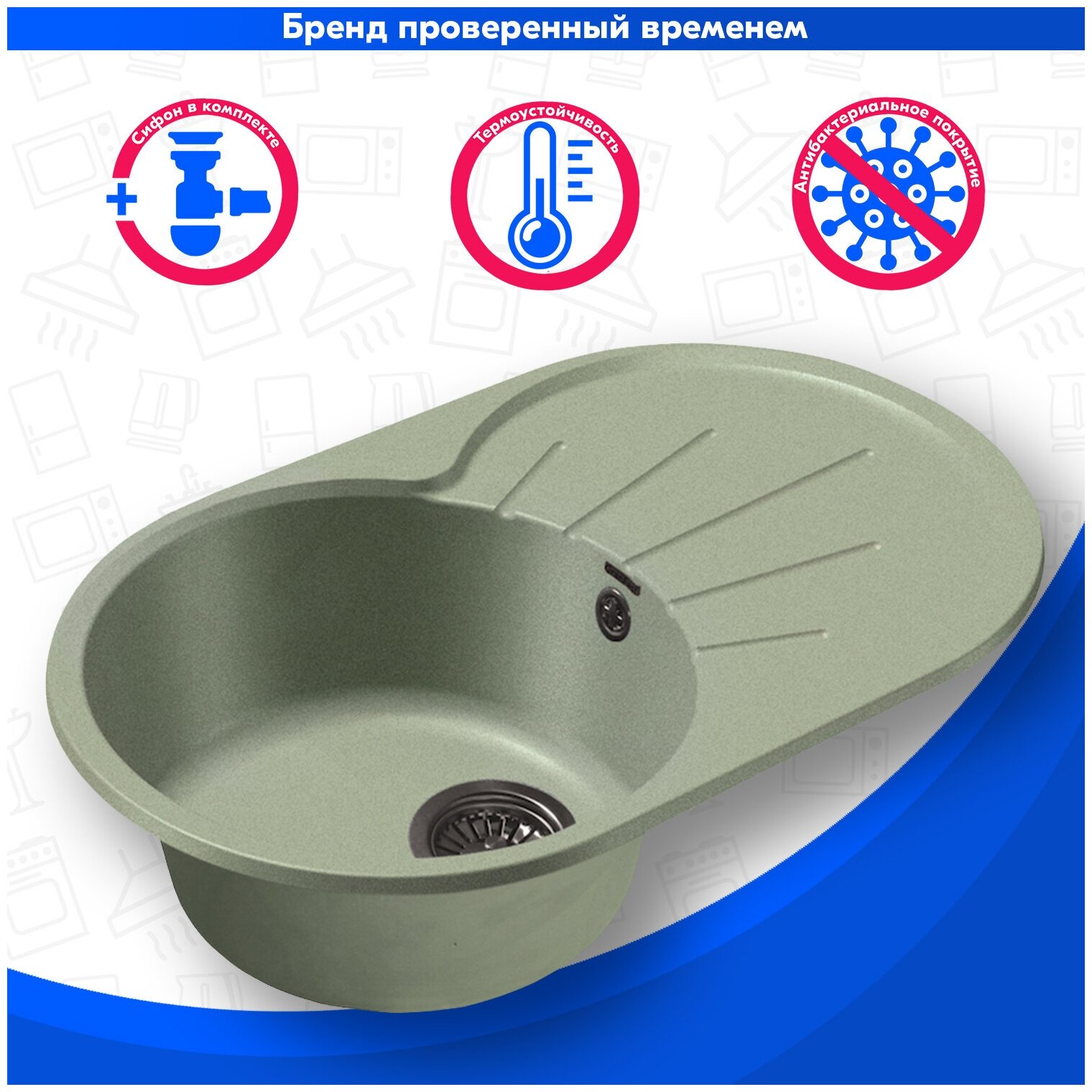 Мойка кухонная овальная Granfest Rondo (R-750L салатовый) 6 443 ₽ Подробнее