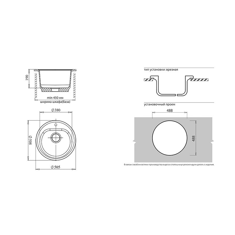 | Размеры врезного отверстия (накладная) | 490x490 мм |