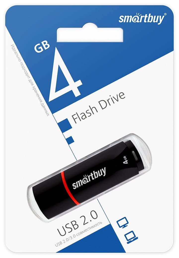 Лучшие цены. SMARTBUY Crown — универсальный флеш-накопитель, прост в использовании, позволяет легко и быстро перенести файлы между устройствами. Предоставляет место хранения для Ваших файлов: фотографий, видеозаписей, презентаций, текстовых документов и так далее. Флешка SMARTBUY Crown объемом 4 Гб совместима со всеми операционными системами. Отверстие для шнурка позволяет прикрепить накопитель к телефону или связке ключей, чтобы он всегда был под рукой. Магазины в вашем городе.