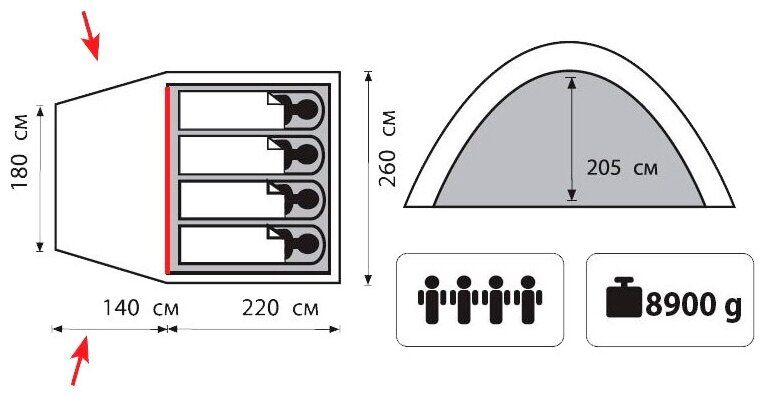 | Внутренние размеры | 220x260x205 см |