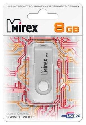 Накопитель USB 2.0 8GB Mirex SWIVEL 13600-FMUSWT08 белый (ecopack)
