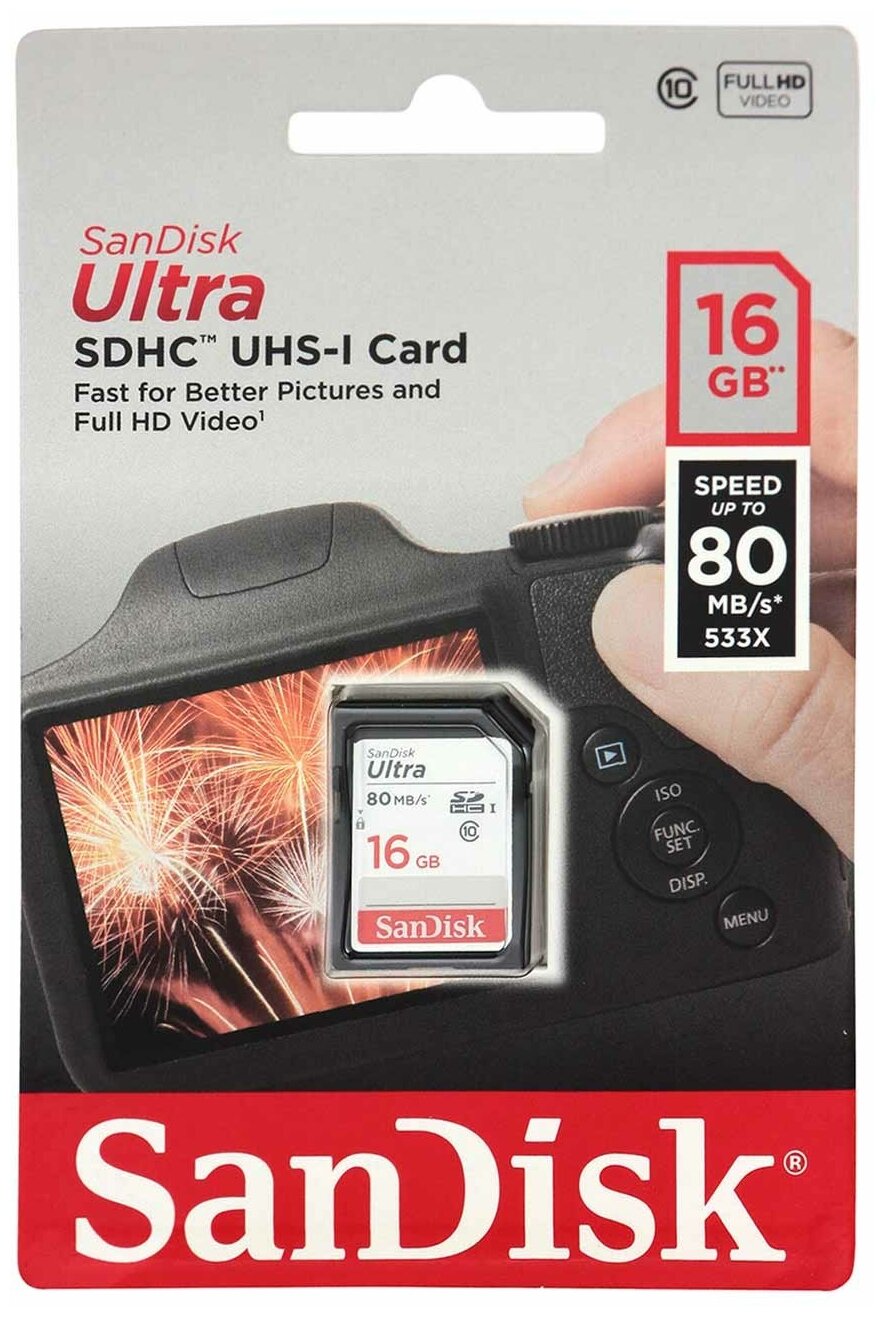 Карта памяти SanDisk SDHC Ultra Class 10 UHS-I U1 (80/10MB/s) 16GB