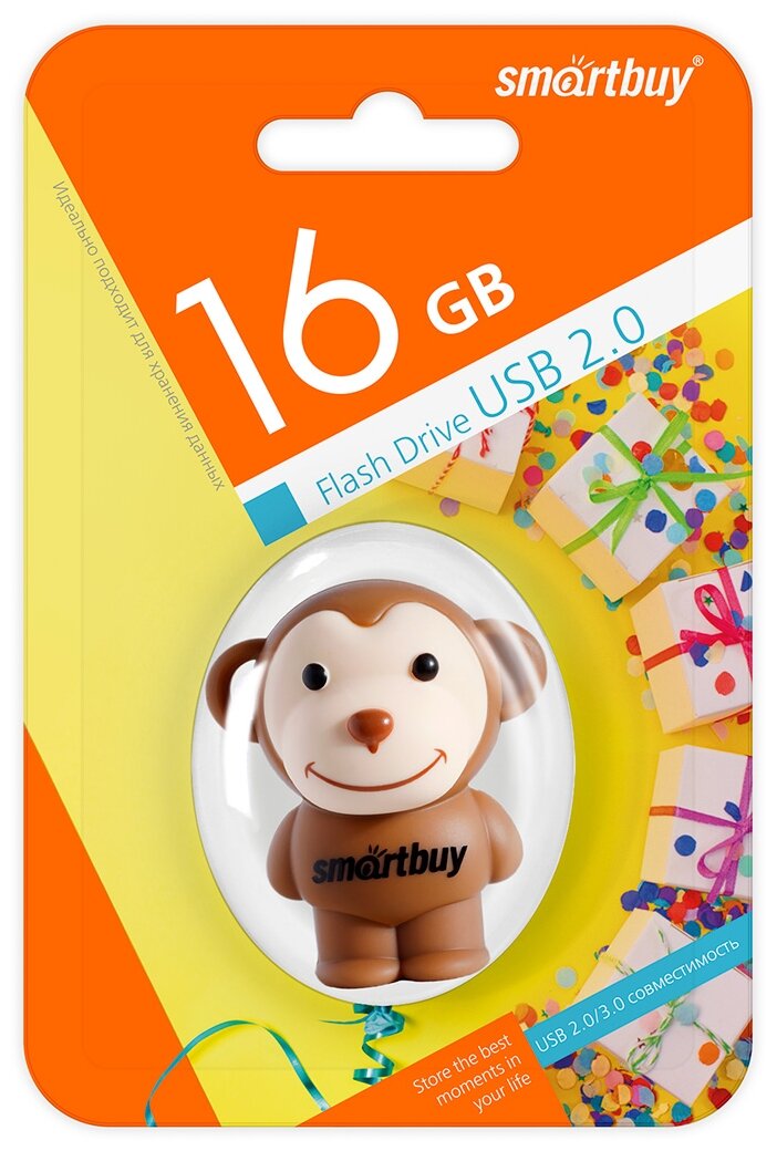 Флеш-накопитель USB 2.0 Smartbuy 16GB Wild series Обезьянка (SB16GBMonkey)