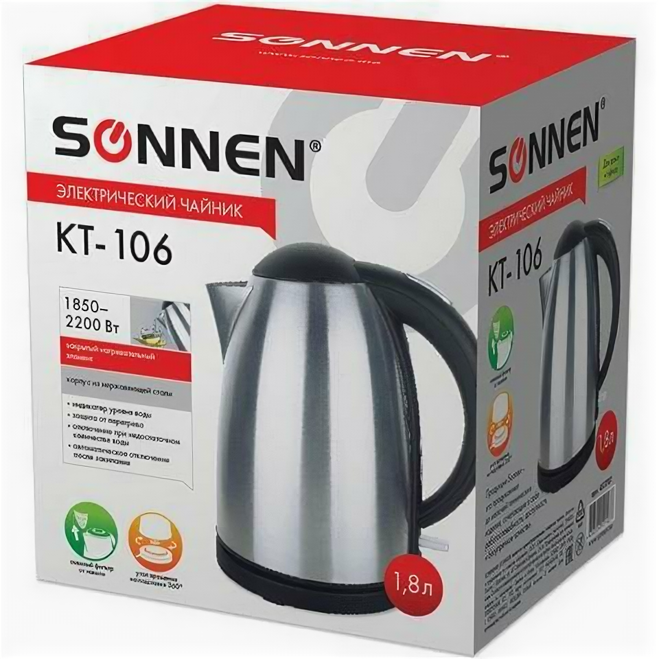 99018116151 Электрочайник SONNEN KT-106 серебристый