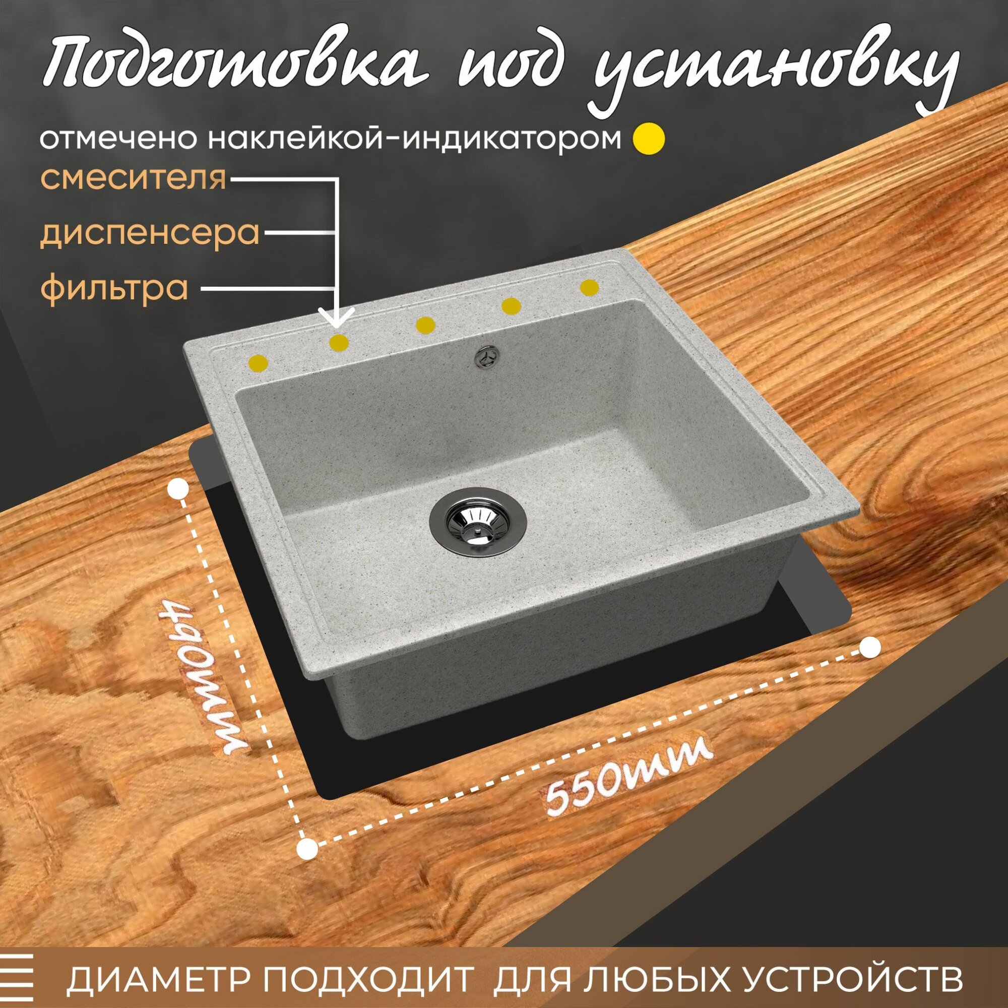 Мойка для кухни врезная каменная Dr. Gans НИКА-570, цвет серый, прямоугольная, 570х510х217 мм