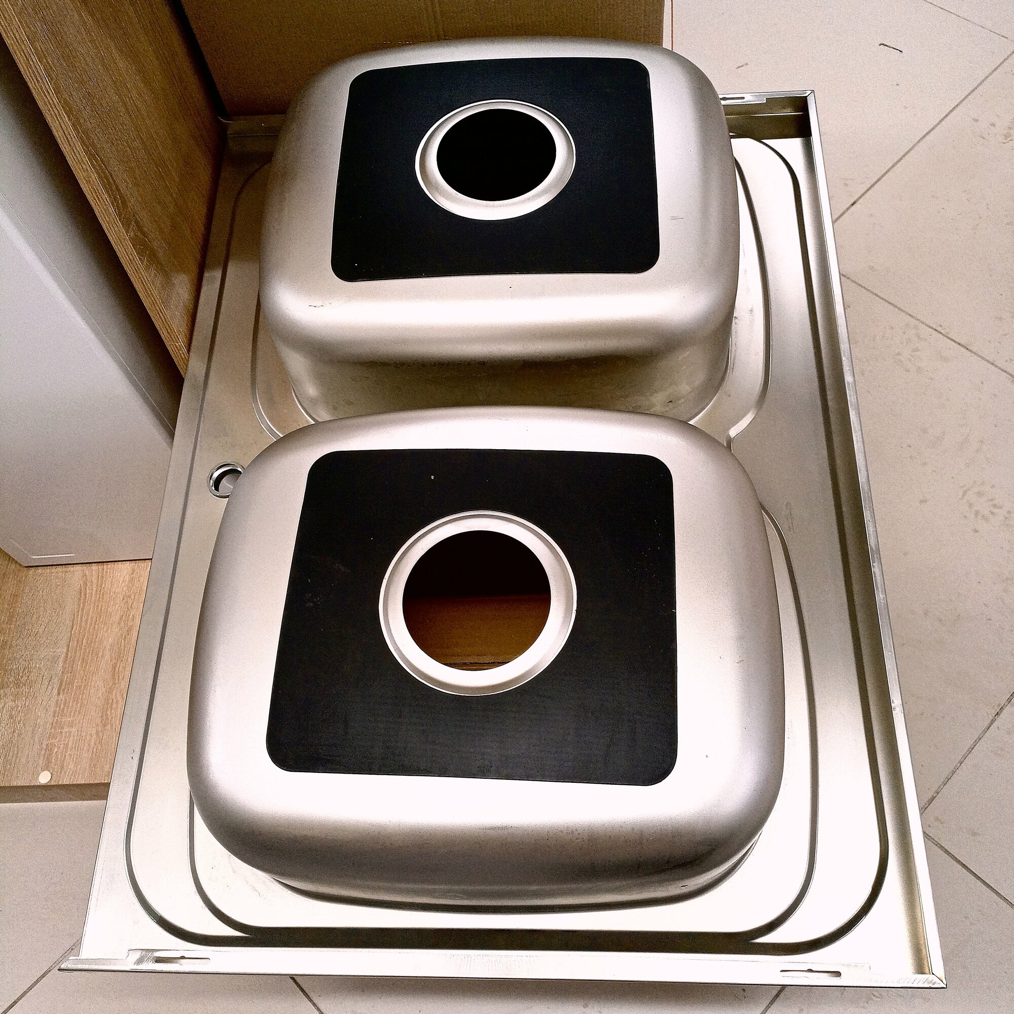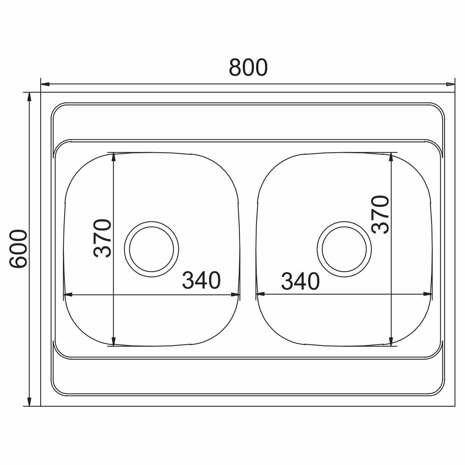 Накладная кухонная мойка Mixline из нержавеющей стали двухчашевая прямоугольная 60х80 см выпуск 3 1/2 глубина 18 см