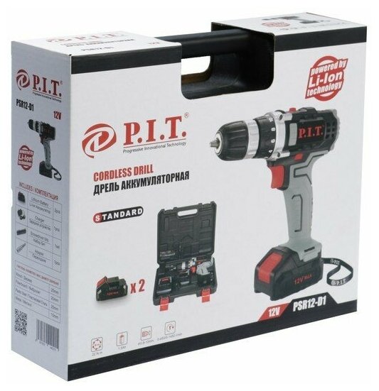 P.I.T. Дрель-шуруповерт P.I.T. PSR 12-D1, 12 В, 2х1.5 Ач, Li-lon, 450/1450 об/мин, 22 Нм, реверс 5 548 ₽ Подробнее