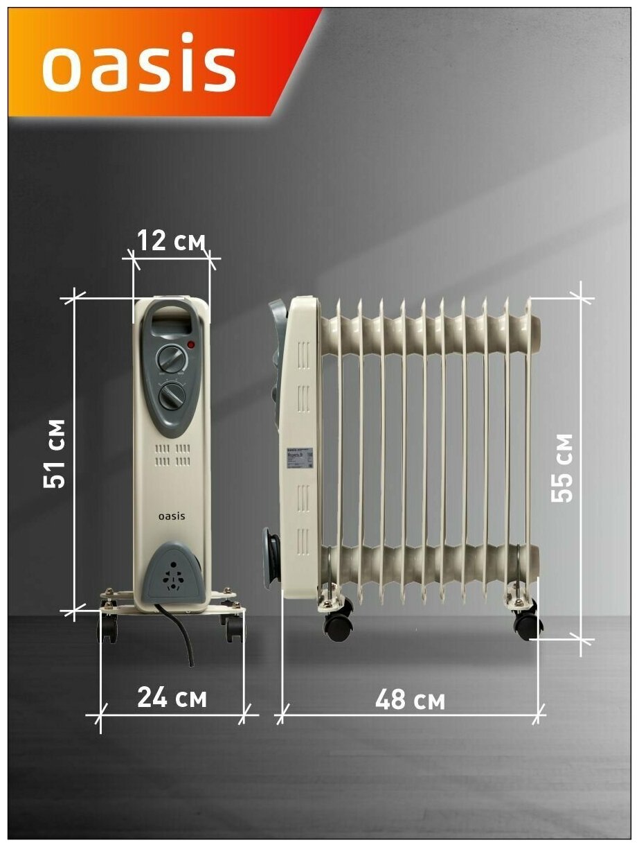 Радиатор масляный Oasis, модель UT-25, 2500 Вт, 11 секций, до 25 кв. м, обогреватель масляный, обогреватель для дома