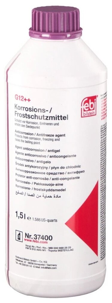 37400f_антифриз! Фиолетовый 1.5l Концентрат 1:1 -40°c G12 Plus Plus Смешивается Febi арт. 37400 1 606 ₽ Подробнее