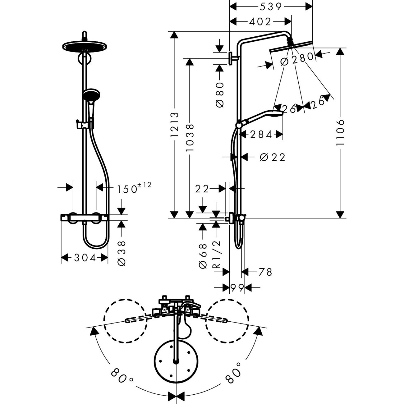 Croma Select S Showerpipe 280 1jet Душевой набор с термостатом 85 580 ₽ Подробнее