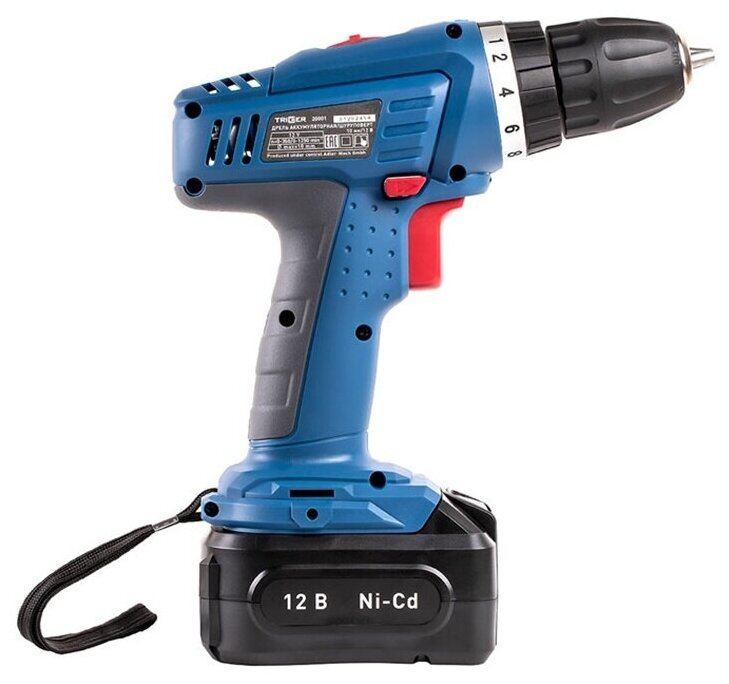 Дрель/шуруповерт Дрель-шуруповерт Trigger 20001, 2 аккумулятора, кейс, 10 мм, 12В