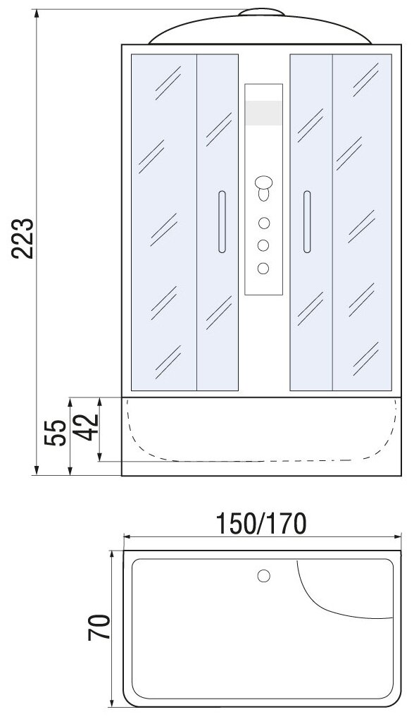 Душевая кабина River SENA 170x70 высокий поддон, тонированные стекла, гидромассаж 71 630 ₽ Подробнее