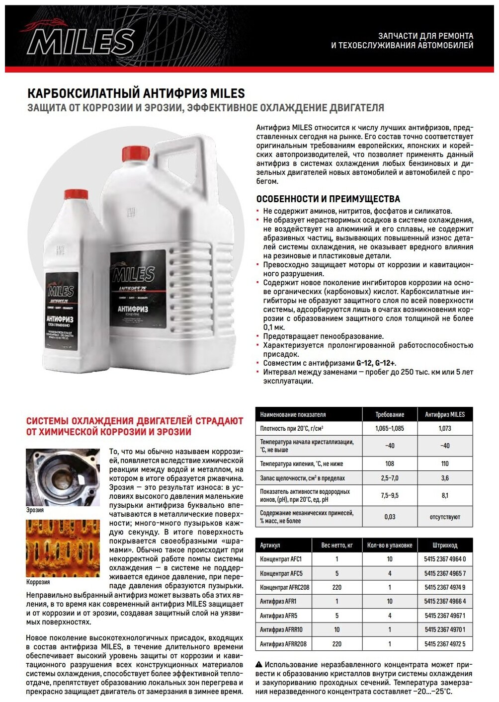MILES AFRR010 Антифриз G12/G12+ MILES готовый 10кг 1 796 ₽ Подробнее