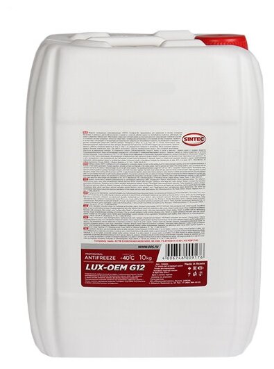 Лучшие цены. SINTEC 756665 Антифриз G12 SINTEC LUX-OEM готовый ВАЗ 10кг -40°С красный. Магазины в вашем городе.